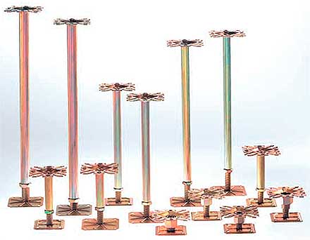 Los soportes crean el espacio hueco debajo del pavimento y pueden fabricarse con diferentes alturas para crear espacios de 20 mm a 2.000 mm de altura.